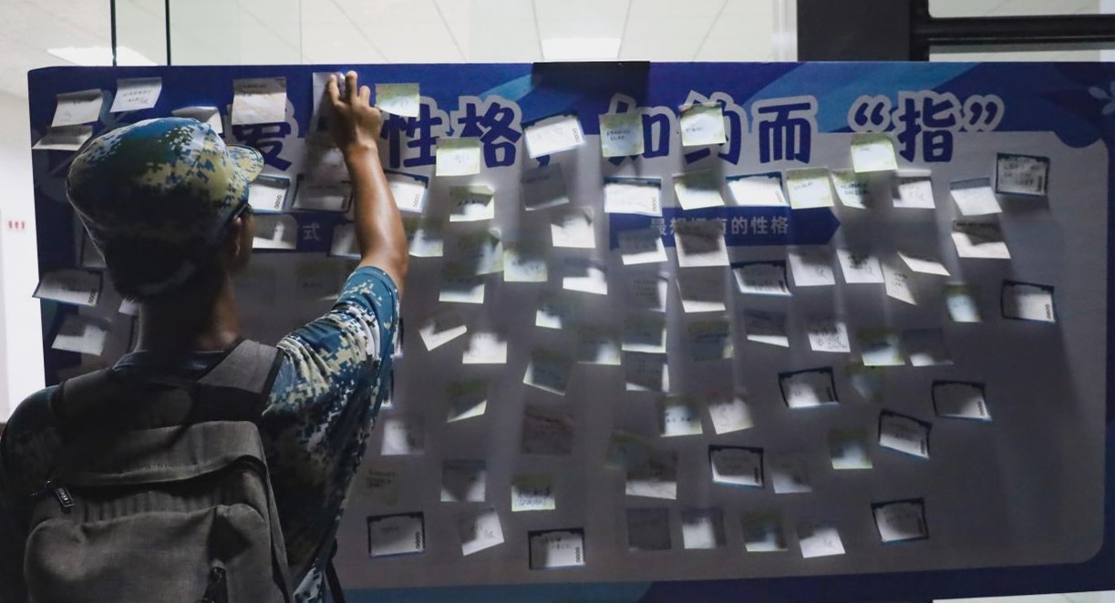 除此之外,在“最想拥有的性格”展板上,写有自信、自由、勇敢的便利贴占据多数,地理科学专业2024(2)班的张子涵俯身在便利贴上写下“勇敢”“坚韧”两词。她坦言,理想中的自我是一个不缺乏勇敢与坚韧的人,未来,她将通过自己的努力,不断向理想中的自我迈进。同时,她还向展板上其他员工送去祝福:“希望大家能够成为自己想要成为的人。”