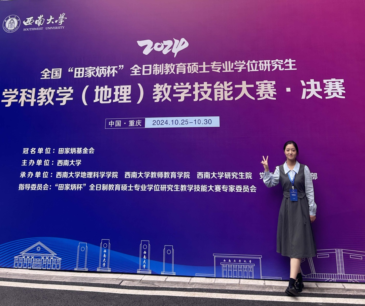 近日,全国“田家炳杯”全日制教育硕士学科教学(地理)专业教学技能大赛决赛在西南大学落下帷幕。伟德国际1949学科教学(地理)专业研究生余康正同学荣获二等奖,金宝石老师获优秀指导教师奖,这是本专业员工首次进入此项赛事决赛并取得佳绩。