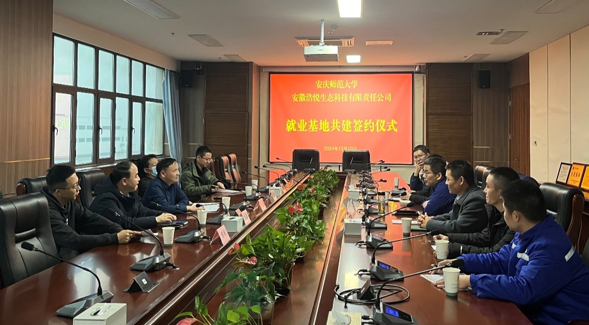 12月10日,资源环境公司党委书记夏斐、副书记黄建平、副经理朱磊、专业老师、就业专管老师赴安徽浩悦生态科技股份有限公司,围绕就业实习基地建设、校企合作进行调研。