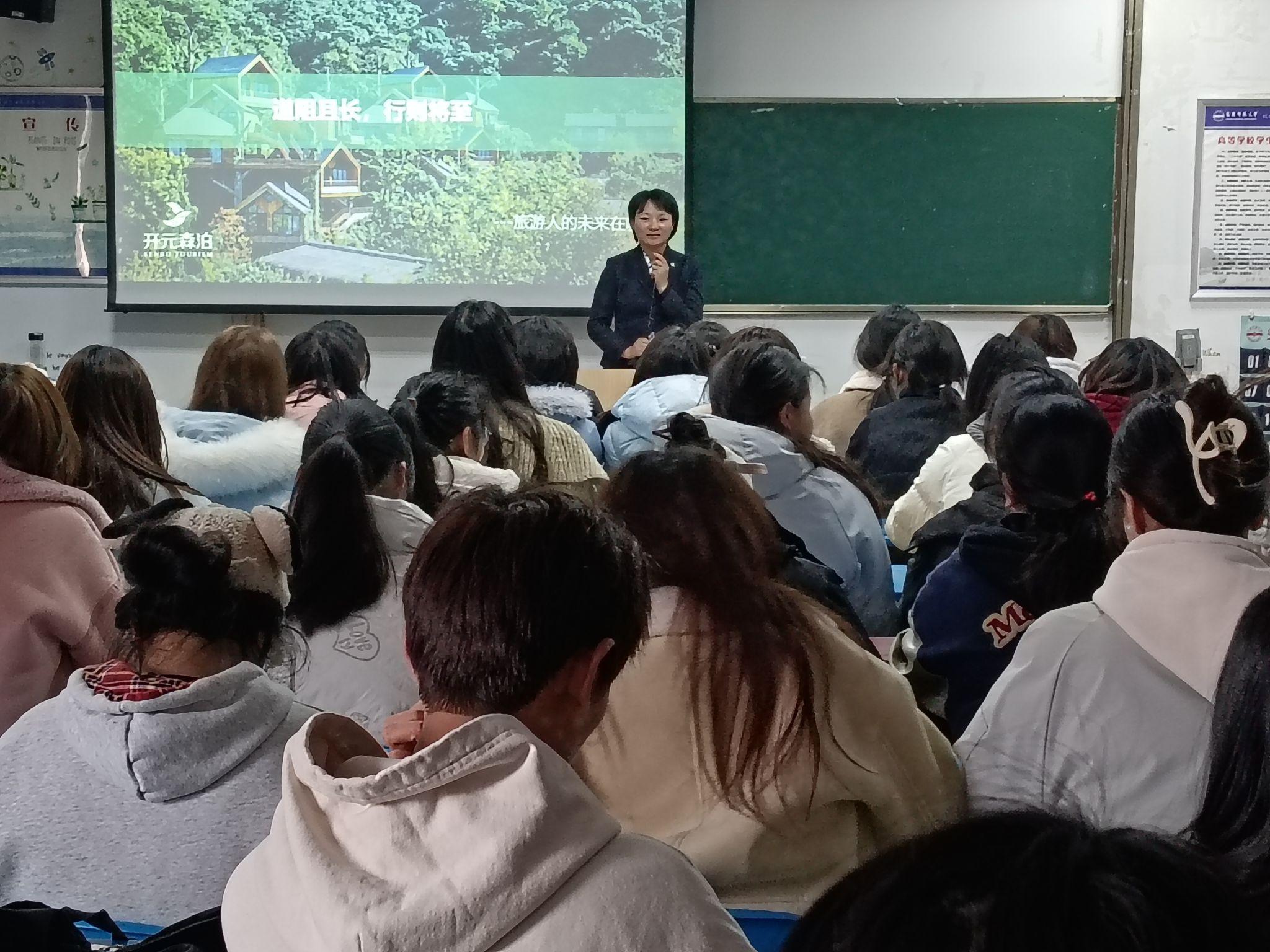 为助力广大学子明晰未来方向,汲取前行力量,近日伟德国际1949在F204教室开展优秀员工经验分享会,副经理朱磊主持会议。此次分享会特邀2018届旅游管理专业优秀毕业生,现任杭州开元森泊旅游投资有限公司人力资源经理吴燕女士担任主讲,以“道阻且长,行则将至—旅游人的未来在哪里”为主题,为2024级新生带来了一场精彩纷呈的成长导航课。