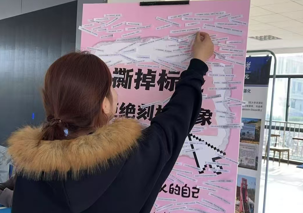 “活动通过具象化的形式,帮助同学们释放心理压力。”活动负责人、旅游管理专业2024级(2)班刘子洁在现场引导同学们交流感受。环境科学与工程专业2024级马晶分享道:"'女生学不好理工科'的标签并不公平,我会用行动证明自己的能力。"不少参与者提到,撕标签的过程让他们意识到不应被他人片面评价束缚。