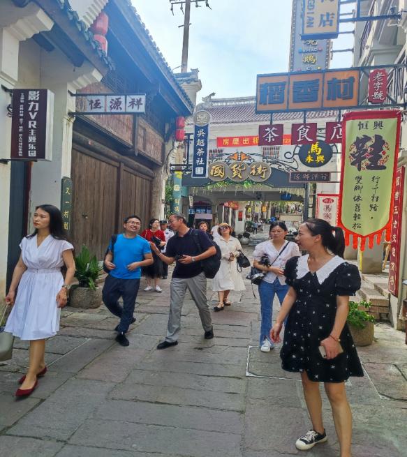 在倒扒狮历史文化街区,教师党员们在了解了街区运营现状和存在的问题后,结合新形势下人们旅游观念的转变,向街区项目负责人有针对性地提出了保护传统街区文脉、整合开发当地特色文化、打造主客共享休闲空间、丰富业态布局、提升互动体验等建议。