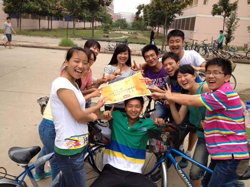 本次比赛采用的是自行车接力的方式,通过女生骑车载男生环绕公司一圈,途中设有三个接力点,分别是银苑食堂、图书馆、安苑食堂。每个接力点都有工作人员接应,选手们在到达一个接力点后需要回答三个有关环保方面的问题才能开始下一轮的接力。整场比赛共分为两局,第一场是大二旅管和大一地科进行接力比赛,第二场是大一旅管对大二地科。比赛过程中,参赛的女选手们都卯足了劲地你追我赶,坐在车后的男选手则不断地喊着加油,整个比赛现场火药味十足。最终,经过两轮的角逐,12级旅管1班取得了第一名的优异成绩,自此,本次趣味自行车接力赛正式拉下帷幕。