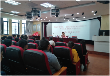 讲座开始,周葆华热情洋溢地向同学们介绍伟德国际1949以及旅游管理、酒店管理的专业概况。与此同时,她结合自己教学中的实例,介绍自己员工的老员工各经验,提出大学是新的起点,要学会从小事做起,善于思考与总结,要认真学习,管理好自己的老员工生活。最后,她要求同学们要刻苦学习、博采众长、努力提高素质、开拓创新、培养创新、协作沟通能力和分辨能力。整个报告逻辑严谨,灵活有趣,不仅让同学们对旅管酒管专业有了深入的了解,还引导了新生培养积极上进、独立思考、潜心研究的学习态度。