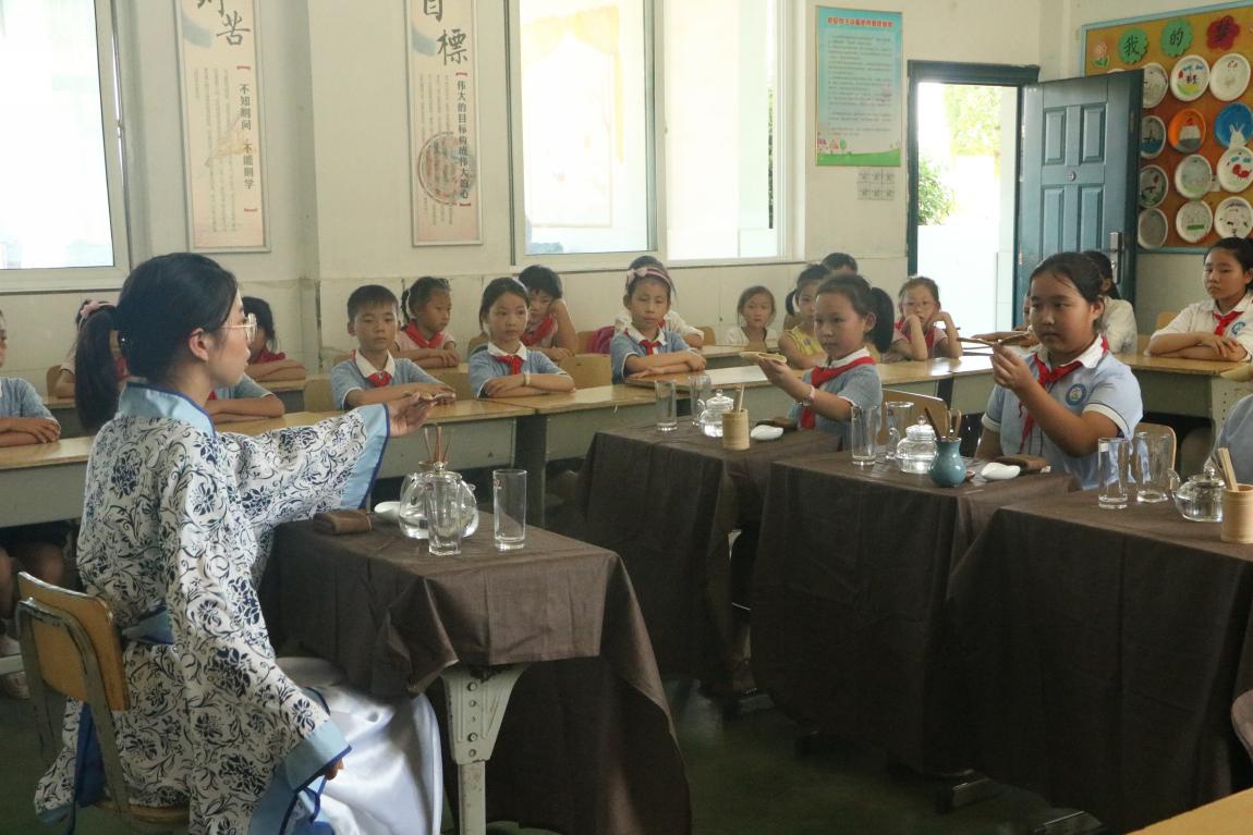 图为暑期夏令营期间志愿者教授小朋友们茶艺文化中国青年网通讯员 张静 摄