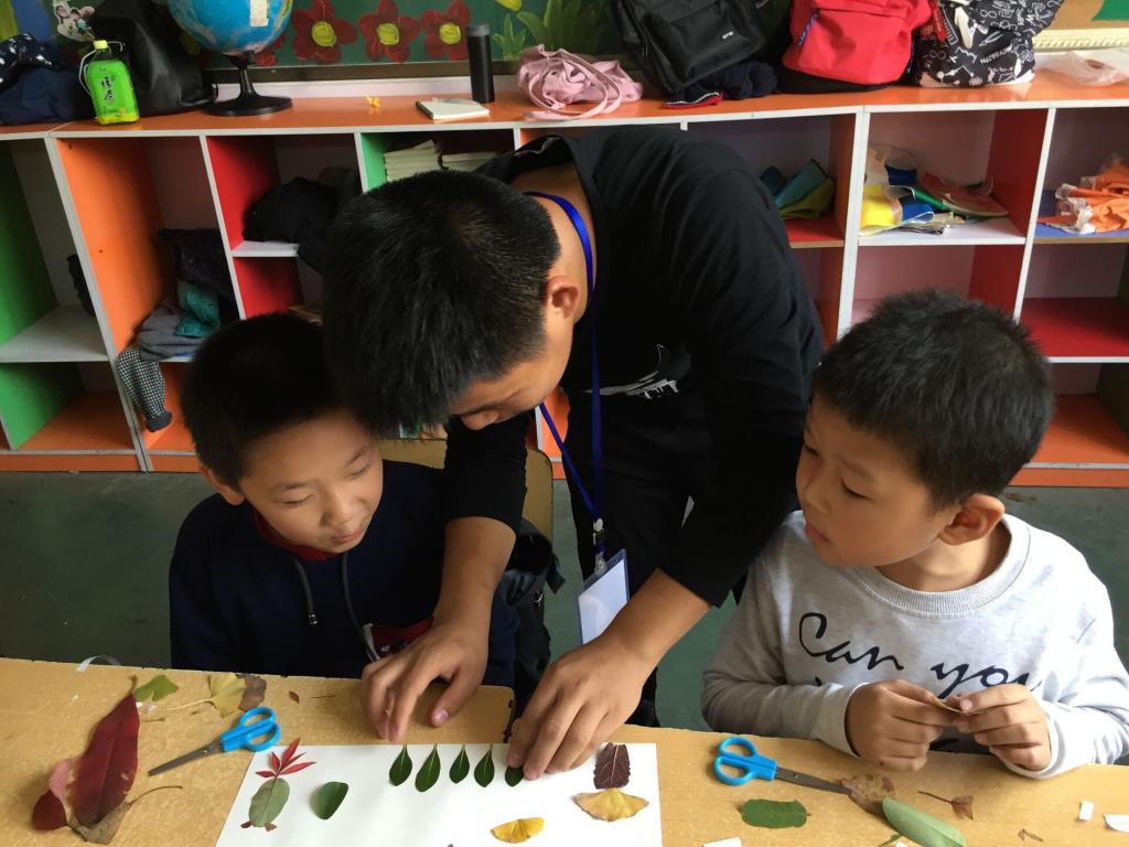 “我要用树叶制作一只好看的孔雀。”“我要制作蝴蝶和花朵。”跟随着志愿者的步伐,小朋友们又来到秋季,领略完北京香山的红叶和南京的梧桐,志愿者拿出准备好的树叶,和小朋友们一起制作树叶画,让孩子去感知世界的辽阔美丽。