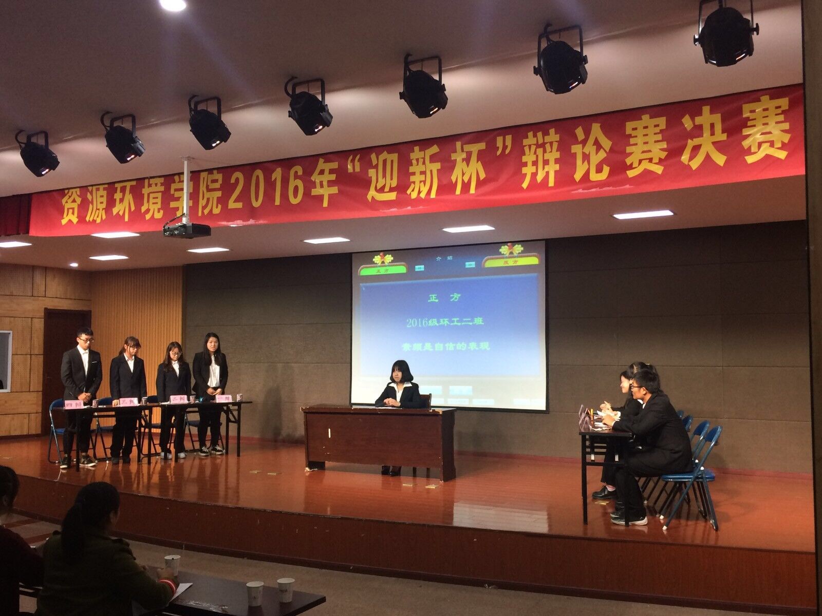 辩题内容涉及到精神励志、容貌自信等方面,如“丑小鸭的故事是励志故事还是黑童话”“素颜是自信的表现还是懒的借口”。大赛由辩论队专业队员组成评委团,秉持“公正公开公平”的原则,认真点评。赛中,正反双方针锋相对,引经据典,旁征博引,赛出了新生的风采。最终16级旅游管理二班摘得桂冠,成功登顶。