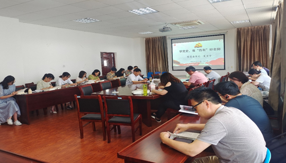 在党史课上,夏宏宇带领全体教师党员重温了习近平总书记在党史学习教育动员大会上的重要讲话精神,就开展党史学习教育的重大意义以及为什么学、学什么、如何学等重要问题进行了阐述。随后,夏宏宇结合自身学习体会,从“开天辟地”“改天换地”“翻天覆地”“惊天动地”四个阶段讲授了中国共产党带领中国人民艰苦奋斗,不断探索,改革创新,推进伟大事业的百年历史伟业。