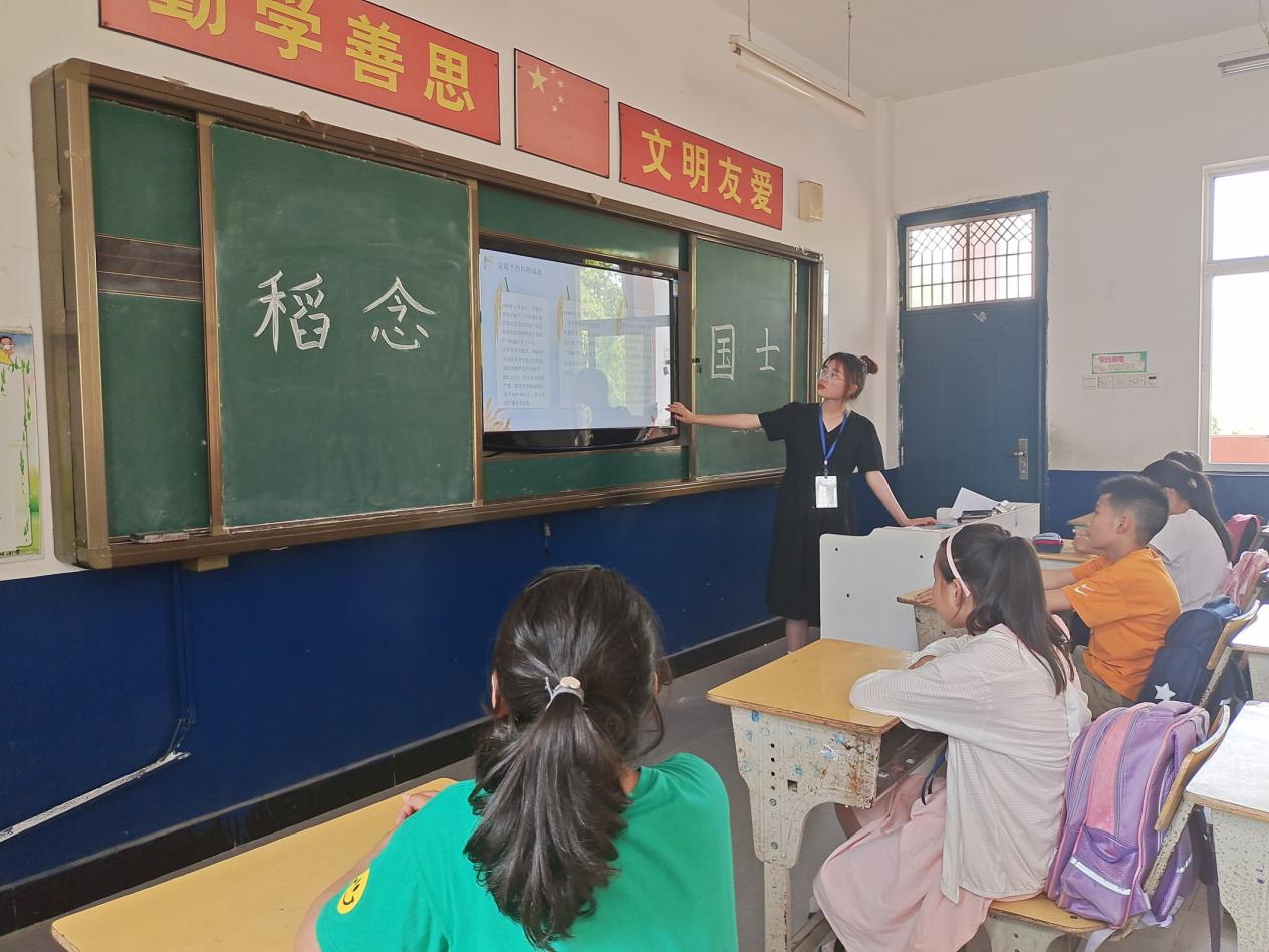 活动伊始,主讲人薛晓蓉询问孩子们是否听爷爷奶奶诉说过他们当年为温饱发愁的生活,用简单的问题带领孩子们走入课堂。主讲人通过PPT,并按时间顺序,罗列了袁爷爷一生的科研成就和重大贡献。随后主讲人播放了一段视频,视频中展现了袁爷爷在稻田里做实验的日常片段,让孩子们感受到他为“杂交水稻覆盖全球梦”及“禾下乘凉梦”所做出的不懈追求。