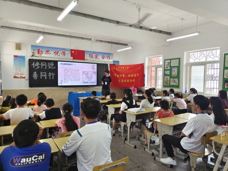 为积极响应国家号召,提高未成年人的网络素养以及运用法律保护自己的能力,公司“予童羽翼,扶摇髫年”暑期三下乡实践团于6月25日至26日前往依泽小学开展“以德治网,以法明纪”主题宣教活动。