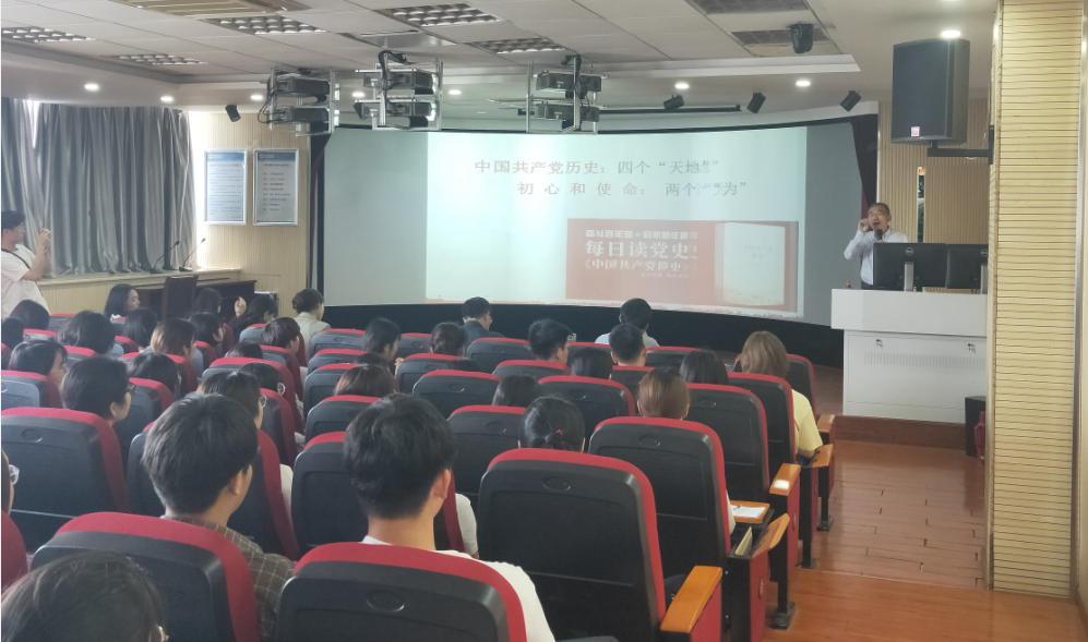 为贯彻落实公司党委关于党史学习教育的部署要求,全面提升员工党员的政治素养,教育引导员工党员做到学史明理、学史增信、学史崇德、学史力行,5月21日,资源环境公司党委在F411报告厅开展党史学习教育,邀请校马克思主义公司党委书记金文斌教授为公司全体员工党员做了一场“从中国共产党历史谈初心和使命”专题宣讲。公司党委书记夏宏宇、党委副书记刘燕杰、各员工党支部书记及全体员工党员共同聆听了本次宣讲。