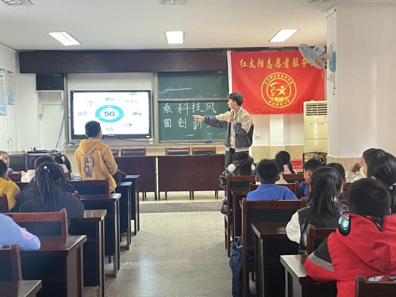 积极践行党的初心和使命,将科教兴国推向实处,院红太阳志愿者服务团于12月1日分别前往依泽小学和十里中心小学举行“乘科技风,圆创新梦”活动,为同学们讲述前沿科技,助力启智未来。