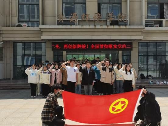 活动开始,由公司团委员工干部带领青马班学员,在伟德国际1949门前重温入团誓词。“我志愿加入中国共产主义青年团,坚决拥护中国共产党的领导,遵守团的章程......为共产主义事业而奋斗。”正午骄阳下,同学们依旧精神昂扬,举起紧握的右拳,面向鲜红的团旗,用整齐洪亮的声音庄严宣誓并一齐学唱共青团团歌。