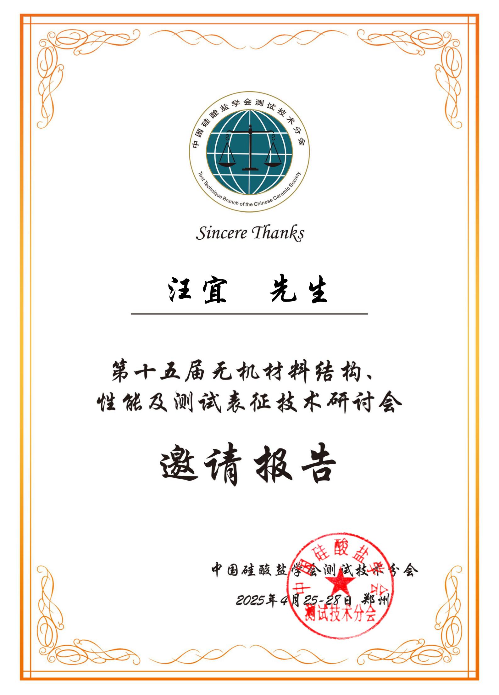 4月25-28日,第十五届无机材料结构、性能及测试表征技术研讨会在河南郑州成功举办,公司伟德国际1949汪宜博士应邀参加会议,并以“功能性碳点的设计与污染物分析检测应用”为题作邀请报告。