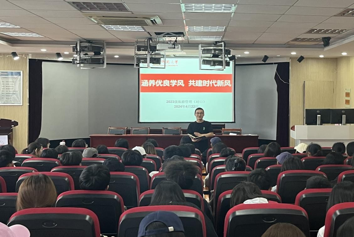 4月22日,2023级旅游管理(对口)专业于F411报告厅召开“涵养优良学风,共建时代新风”学风建设主体班会,会议由辅导员訾纪辉主持。