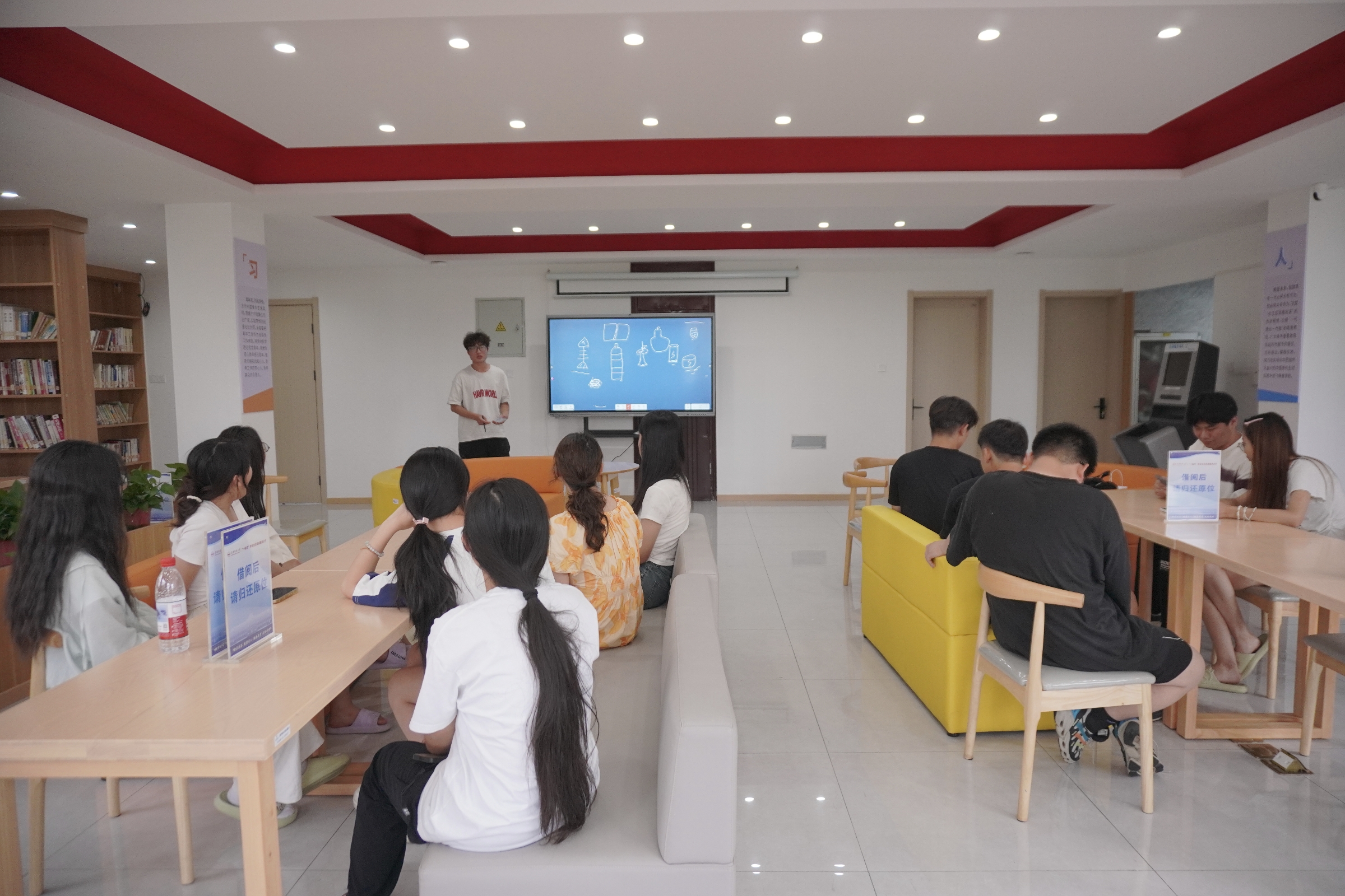 生动萌趣的鱼骨头,奇形怪状的果皮残骸,矮胖可爱的电池……同学们妙笔生花,将生活中常见的垃圾以Q版或写实的手法跃然纸上。没上台的同学们则化身“环保侦察兵”,竞相为这些“垃圾”精准归类。现场互动频繁,气氛热烈,不仅让同学们对垃圾分类知识有了更深入的理解,也让大家在轻松愉快的氛围中增强了环保意识。