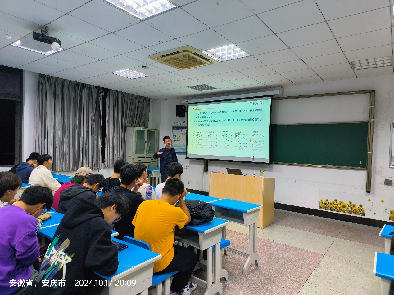 李青山博士从土壤养分含量对作物品质的影响入手,向师生们讲解了有机碳源调控土壤养分的理论基础、不同有机碳源调控土壤养分含量的差异、施用有机碳源提高作物品质的应用效果等方面的研究进展,并以近年来团队所做的科研课题、发表的学术论文和指导员工参加的学科竞赛为案例,全面阐述了有机碳源调控土壤养分含量提高作物品质的重要作用。