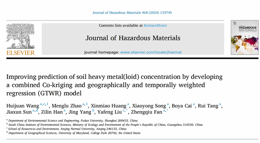 近日,伟德国际1949刘亚风副教授以共同通讯作者在环境领域著名期刊《Journal of Hazardous Materials》(中科院JCR分区1区,IF=13.6)上在线发表了关于大规模土壤重金属浓度预测的研究成果。